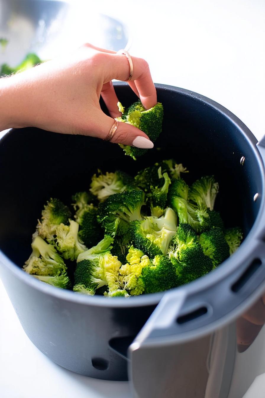 - Arrange the broccoli in a single layer in your air fryer basket; this ensures each piece gets that delicious crispy edge.