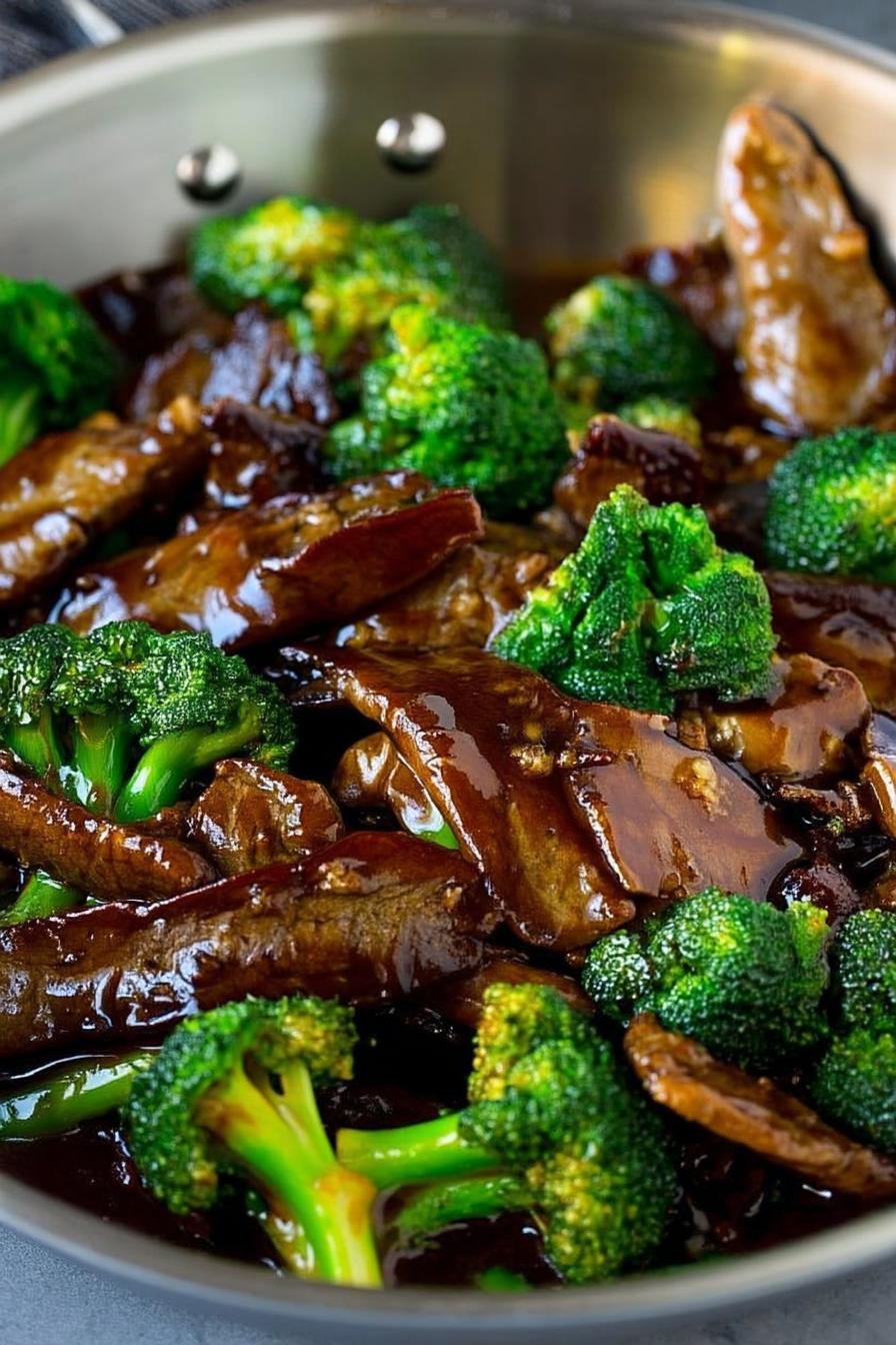 - Heat a large pan over high heat. Stir-fry marinated beef for about 3 minutes until browned. Next, add broccoli florets and continue to stir-fry for another 4-5 minutes until tender-crisp.