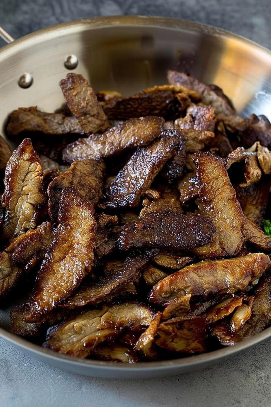 - Heat your pan on high until it nearly smokes, then quickly stir-fry the marinated beef for about 3 minutes, ensuring a nice sear while keeping it juicy.