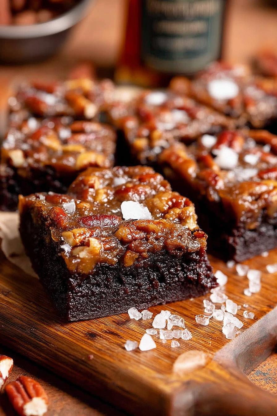 Bourbon Pecan Pie Brownies with Fudgy Chocolate Topping