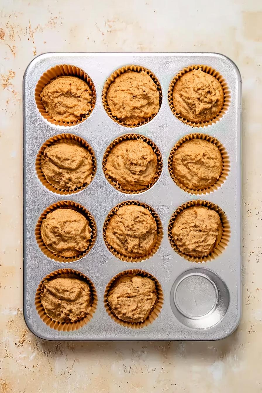 - Gently fold the dry ingredients into the wet mixture until just combined; fill muffin liners nearly to the top.