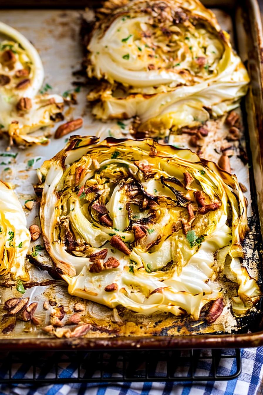 • Sprinkle the roasted cabbage with grated Parmesan and chopped pecans. Squeeze fresh lemon juice over the top before serving.