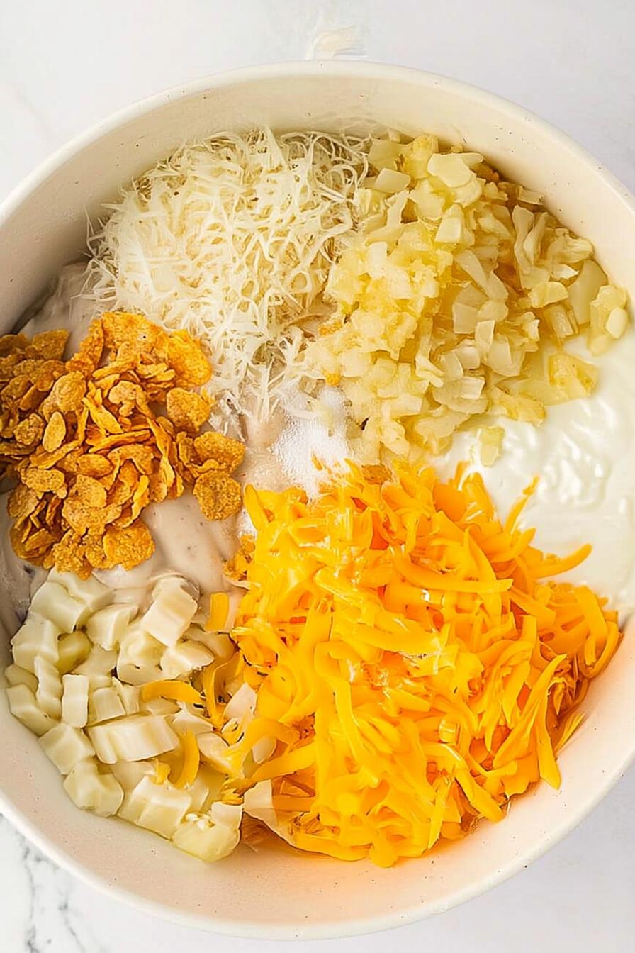- Sharp Cheddar Cheese: Brings a rich, bold flavor; fresh-grated cheese melts beautifully.