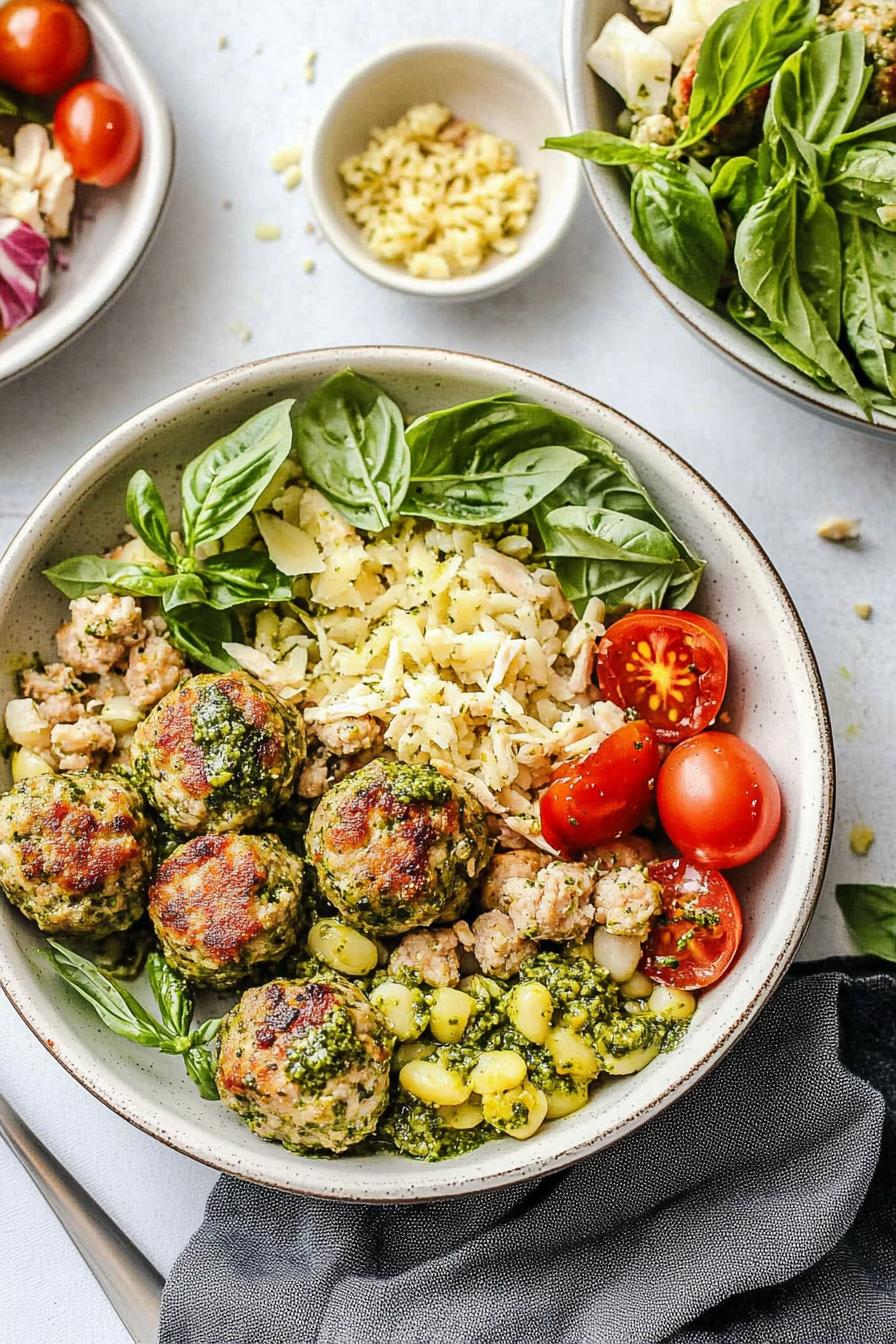 These Chicken Pesto Meatballs shine over zucchini noodles or tossed with pasta and extra pesto. For a complete meal, serve with simple garlic bread or a crisp green salad.