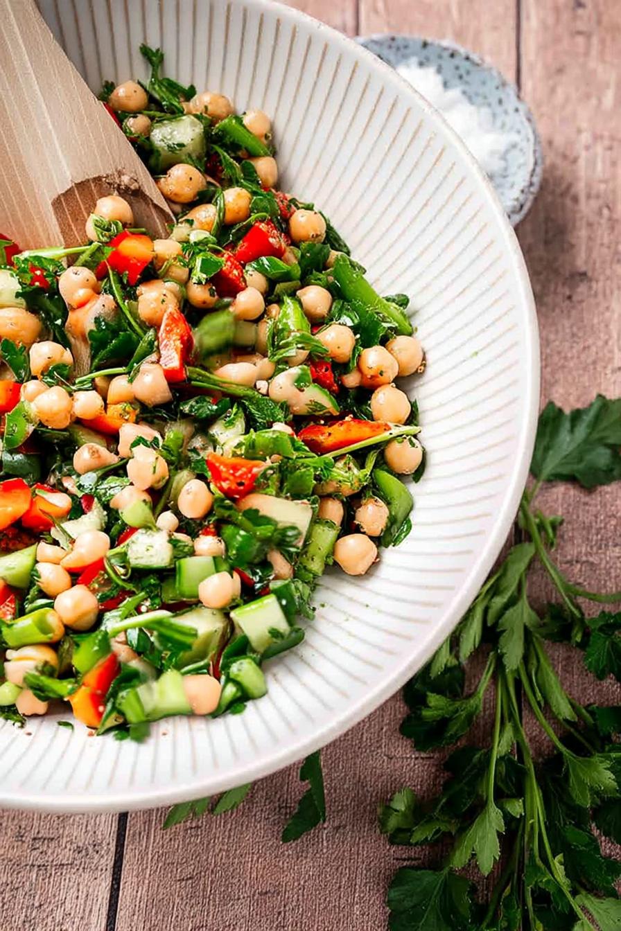 This Chickpea Chopped Salad can be stored in the fridge for 3-4 days in a sealed container. For longer storage, consider freezing the chickpeas separately. When ready to eat, simply thaw and mix with the fresh veggies. In my testing, I found that the flavors only got better with time, making it an excellent make-ahead option.