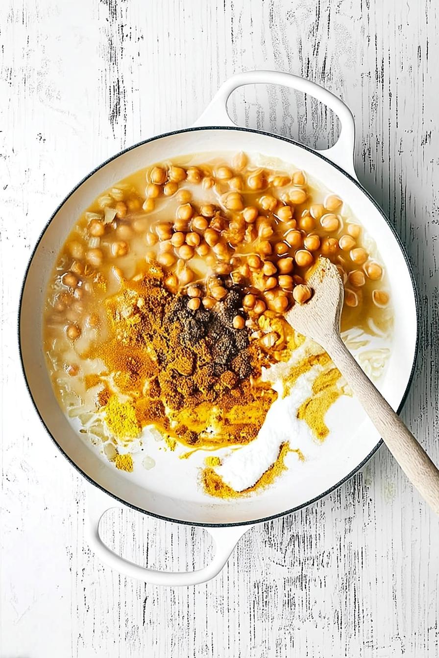 - Add the chickpeas and coconut milk, stirring to combine. Let it simmer gently, allowing all flavors to meld for about 10 minutes.