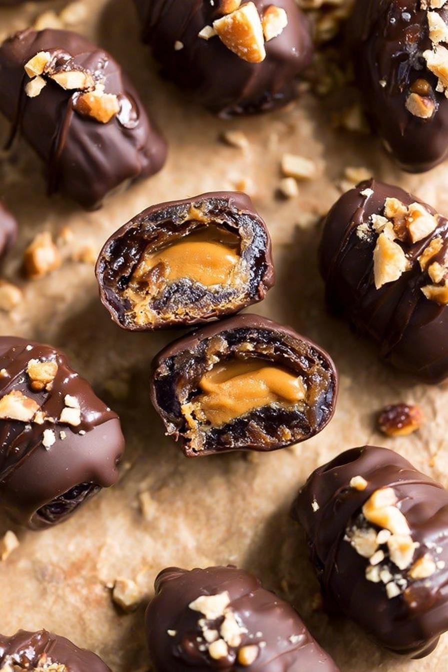 About Chocolate Covered Snickers Stuffed Dates