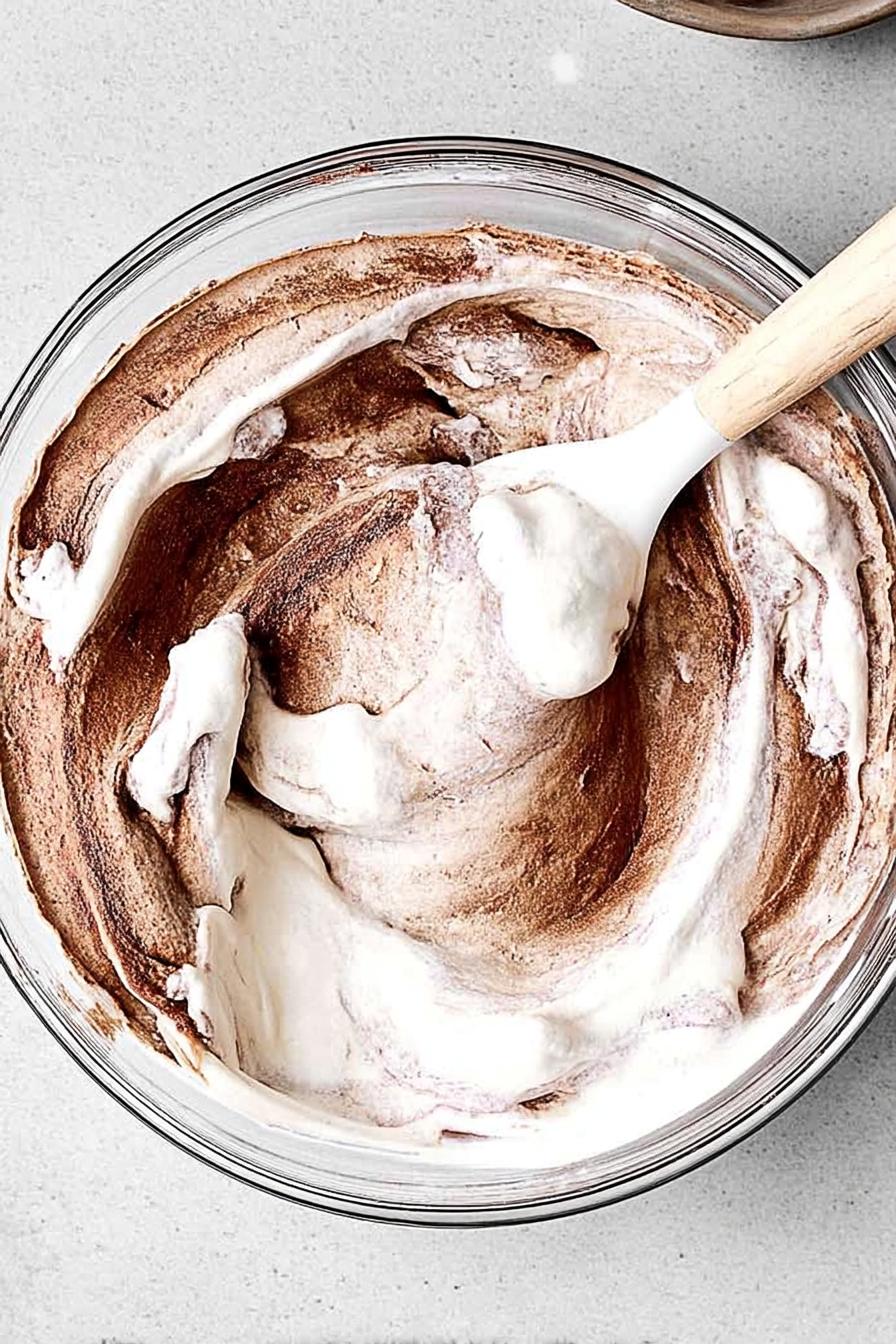 - Gently fold the whipped cream into the chocolate mixture until fully combined.