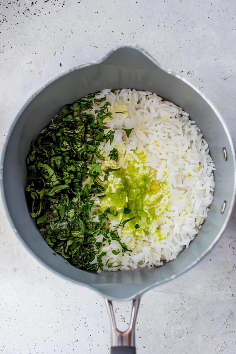 - While the rice is still warm, stir in the zest and juice of 1 lime, 1 small chopped garlic clove, and ½ cup of finely chopped cilantro for that burst of flavor.