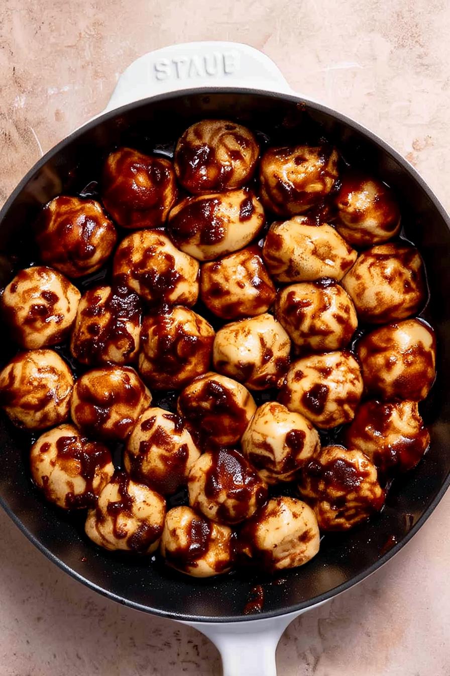 4. Pour the hot butter-sugar mixture over the dough pieces.
