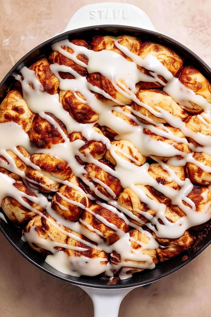 • Can I use homemade dough instead of canned cinnamon rolls? Yes, use 1 lb of your favorite enriched dough cut into 1-inch pieces; adjust bake time to 25–30 minutes.