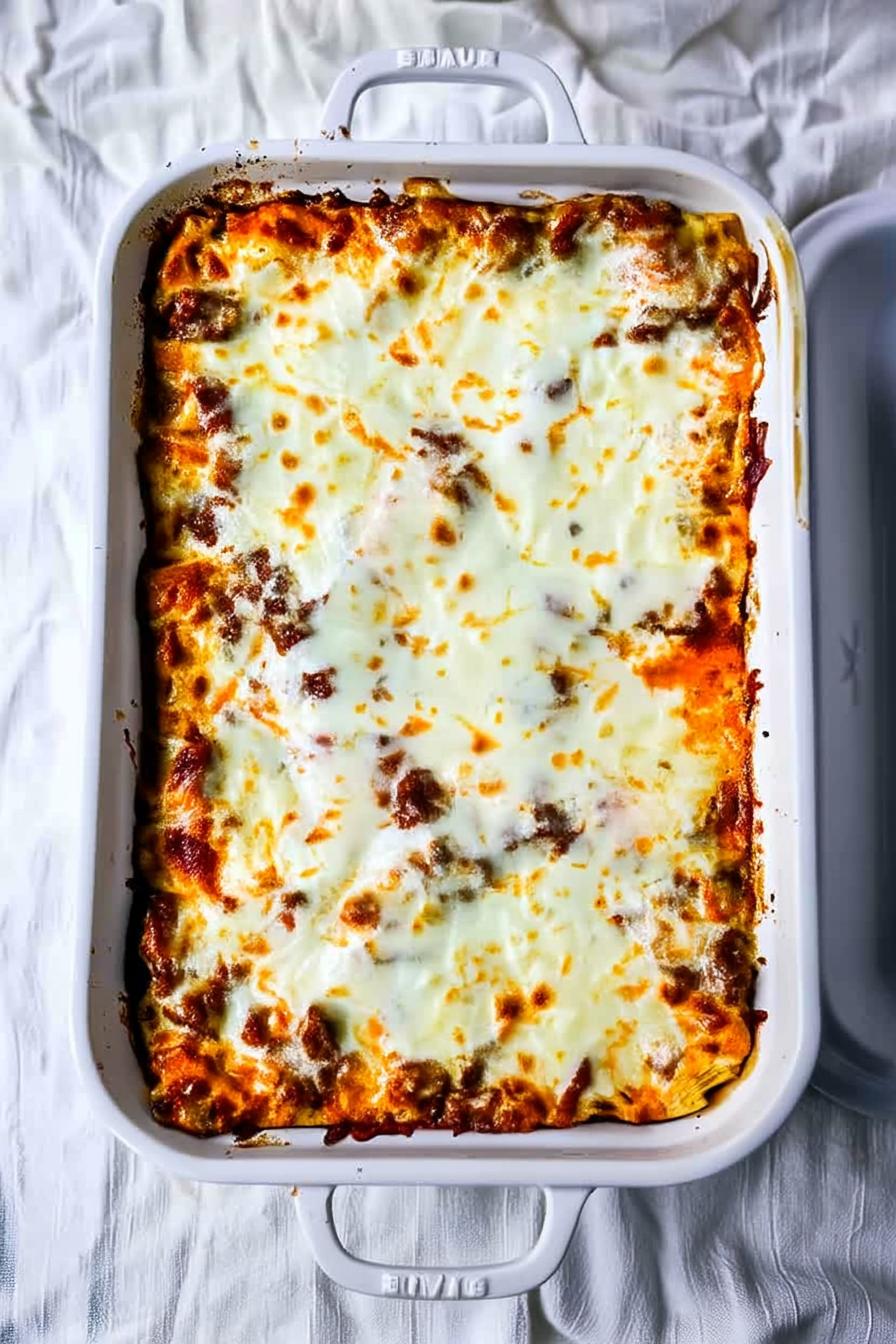 Assemble up to 24 hours ahead and keep covered in the fridge. Once baked, let it cool for no more than 2 hours, then refrigerate leftovers in airtight containers for 3–4 days. For longer storage, wrap individual slices tightly in foil and freeze up to 3 months—this method preserves layers best. Reheat covered at 350°F until warmed through to 165°F internal temperature for safe consumption.