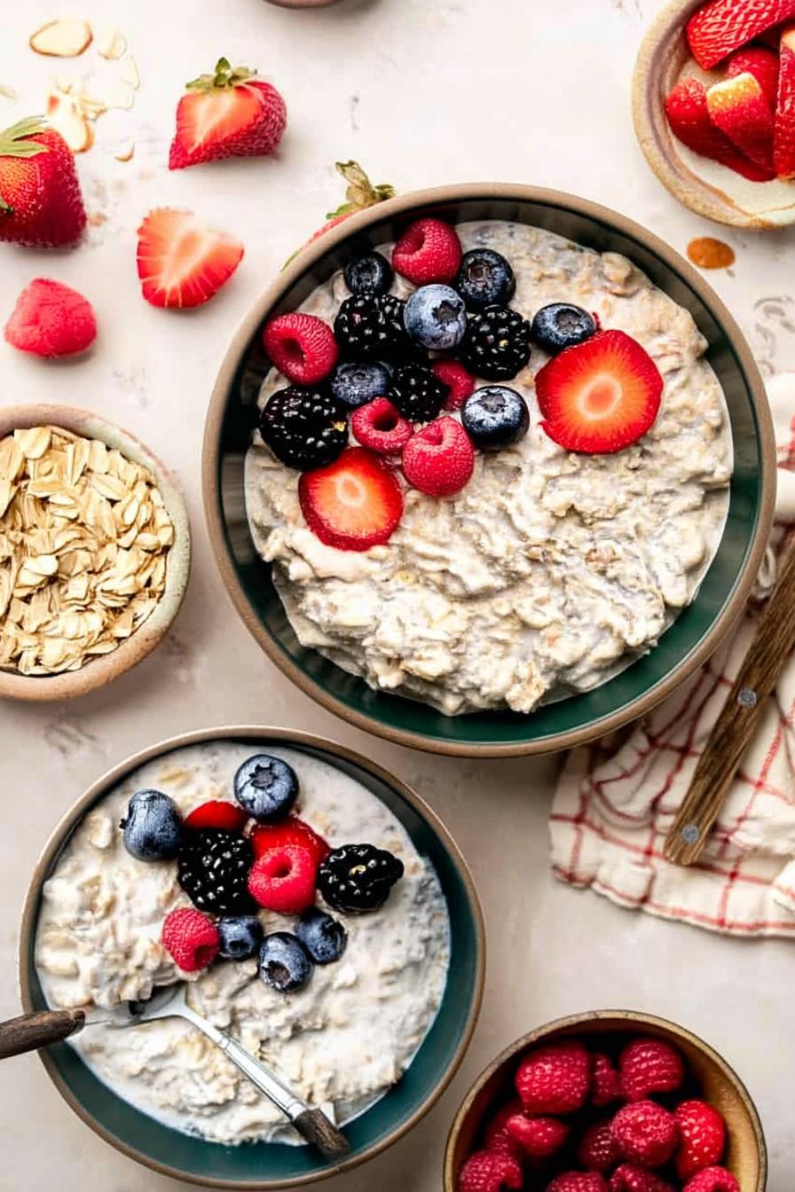 Your Cottage Cheese Overnight Oats stay fresh in the refrigerator for up to 5 days in airtight containers. They do not freeze well due to the texture changes, but they make for quick, nutritious meal prep. I’ve also found these oats taste even better after a day as the flavors integrate beautifully!