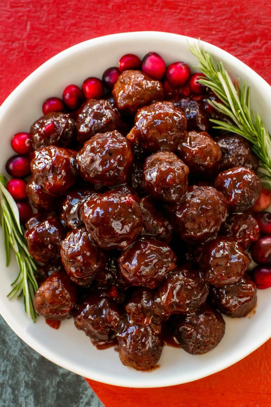 Keyword Cranberry BBQ Meatballs, easy meatballs, holiday recipe, party appetizer, savory glaze