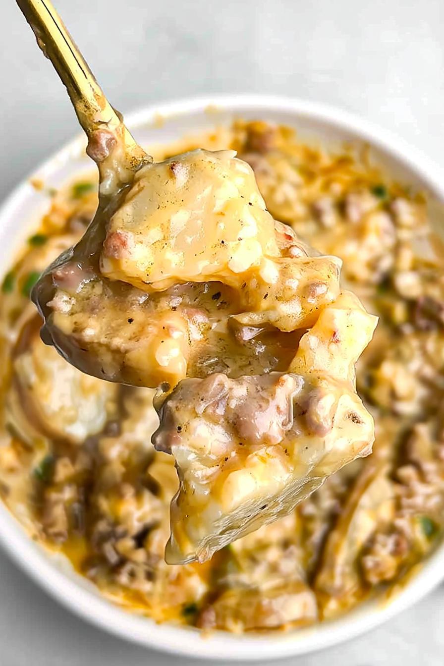 - Sausage and Creamy Hashbrown Casserole – a similarly cheesy potato bake with savory sausage notes