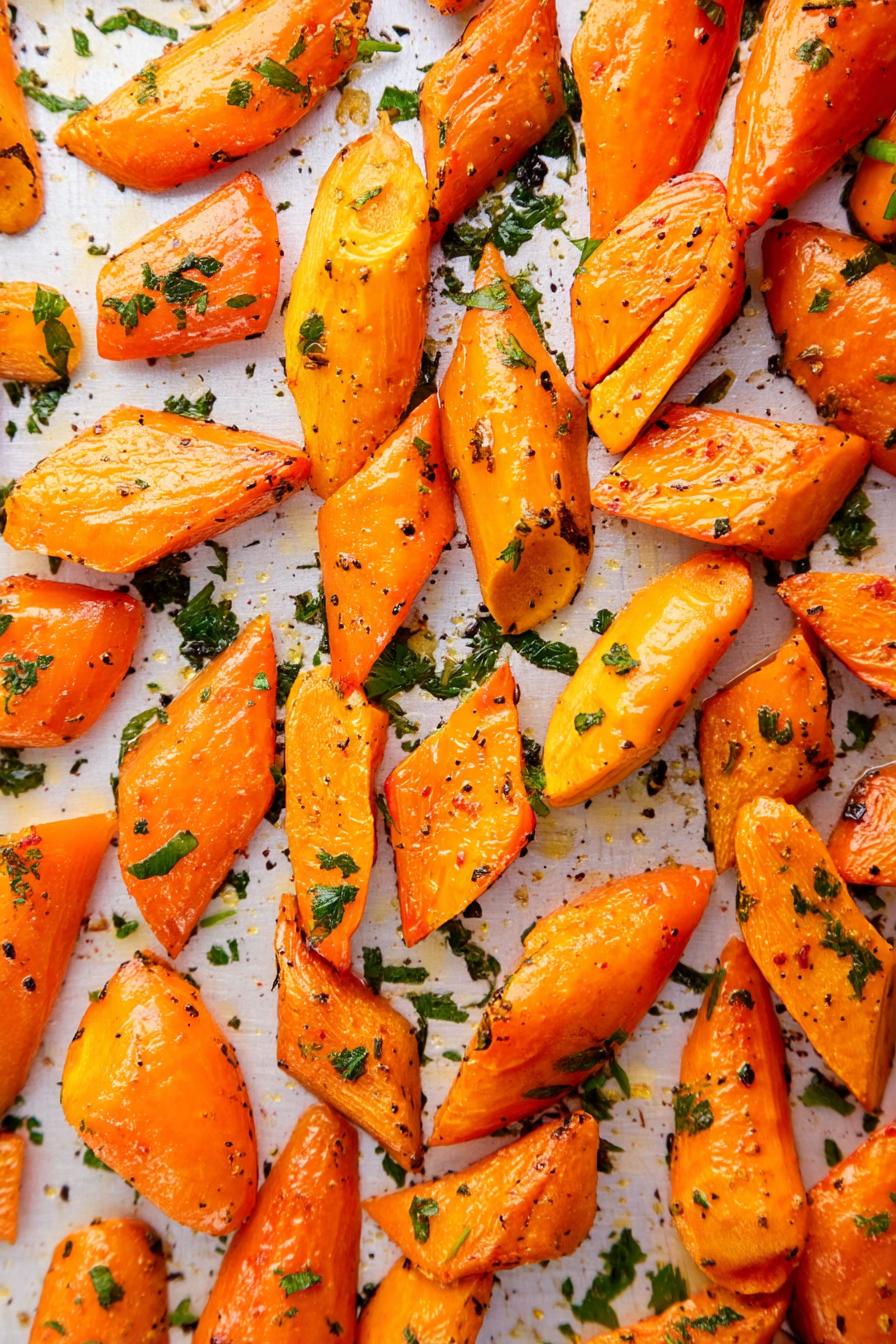 Store cooked carrots in the refrigerator for up to 4 days. They can also be frozen in an airtight container for up to 3 months. Reheat in the oven at 350°F for about 10 minutes for the best texture. After several attempts, I found that reheating preserves most of the flavor and crispness.
