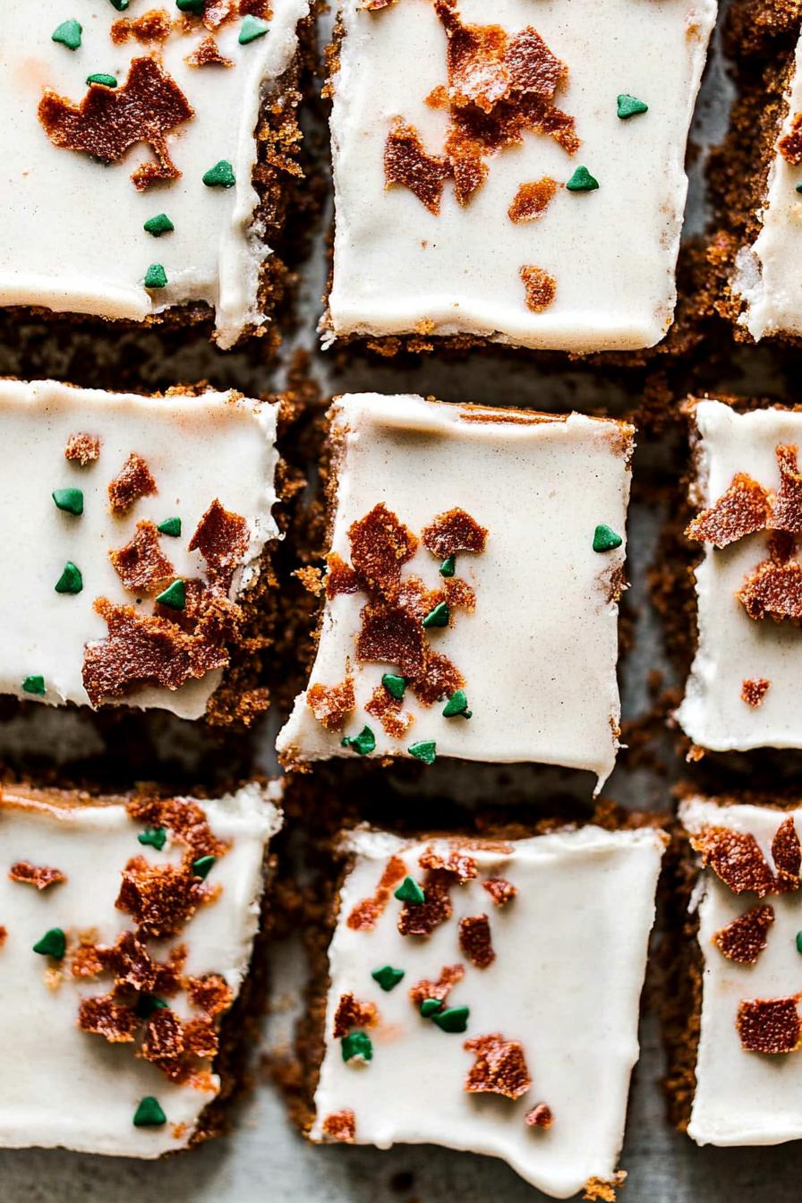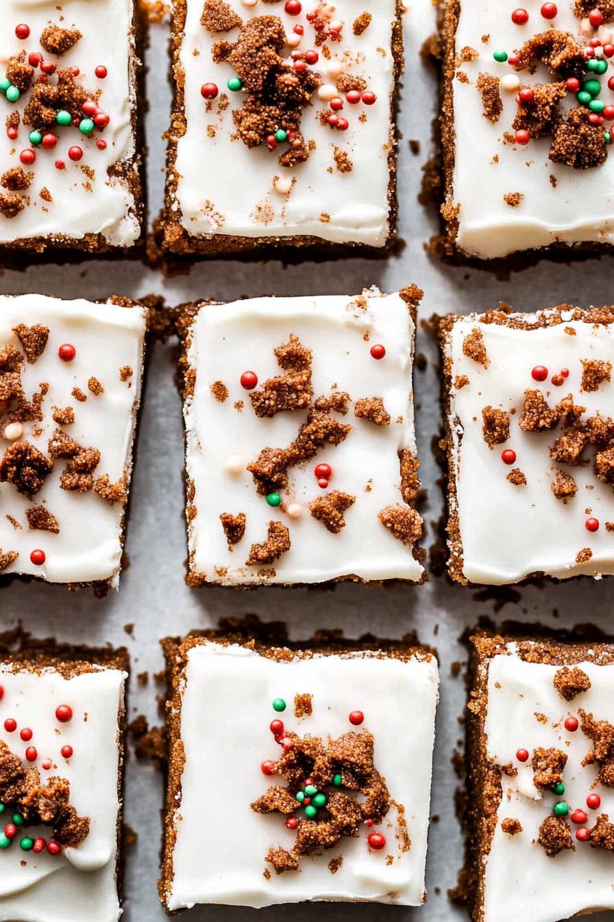 Soft, chewy bar cookies infused with warming ginger, cinnamon, and cloves, then crowned with silky cream cheese frosting.