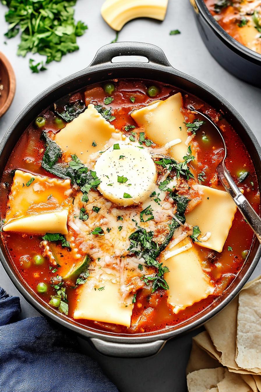 - Lasagna noodles: hearty texture—break into pieces so they cook evenly in the broth.