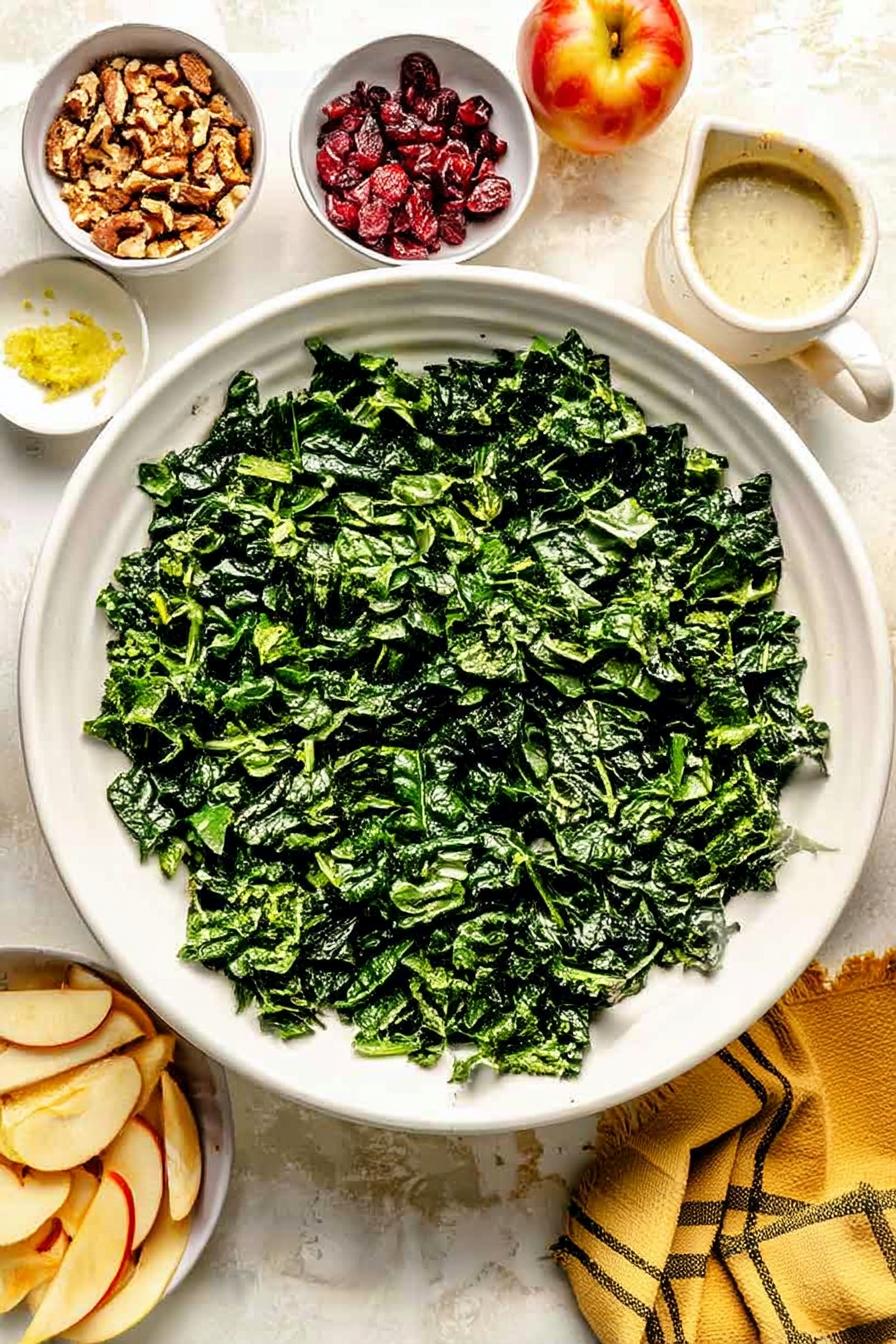 3. Combine the massaged kale with the dressing in a large bowl, tossing gently to coat. Let it sit for 5-10 minutes to allow the flavors to meld.