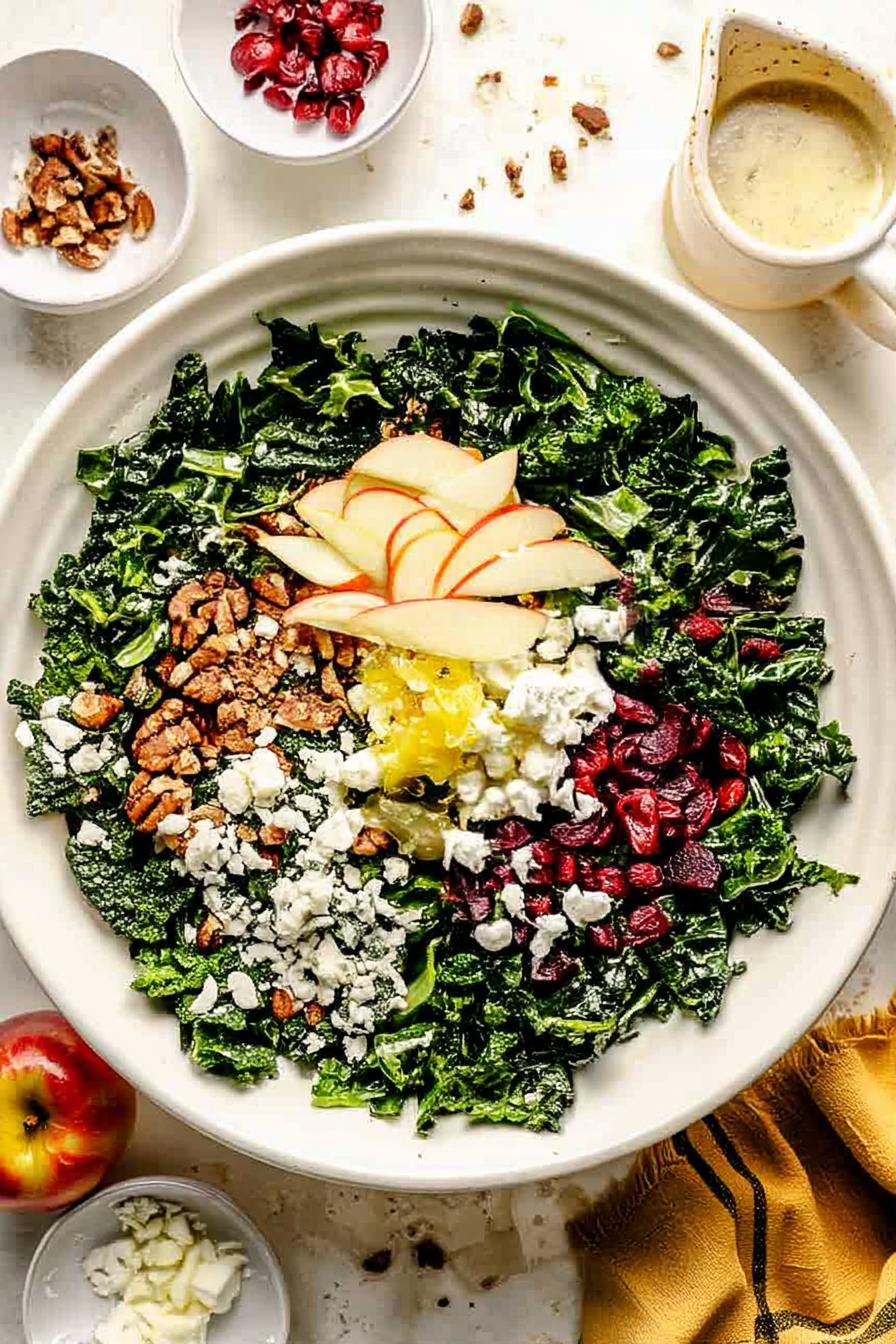 • What type of kale is best for this salad? Lacinato (also known as dinosaur kale) works well due to its tender leaves and sweet flavor.