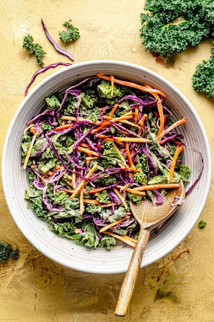 This Kale Slaw with Greek Yogurt Dressing can be stored in the refrigerator for up to 3 days. It’s best enjoyed fresh, but if you make it ahead, keep the dressing separate until serving for extra crunch. Following my last test, I found that the slaw maintained its vibrant flavor and texture over the storage period.