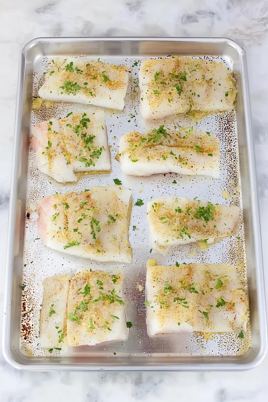 - Place cod in a baking dish and pour the marinade over it. Let it marinate for at least 15 minutes.