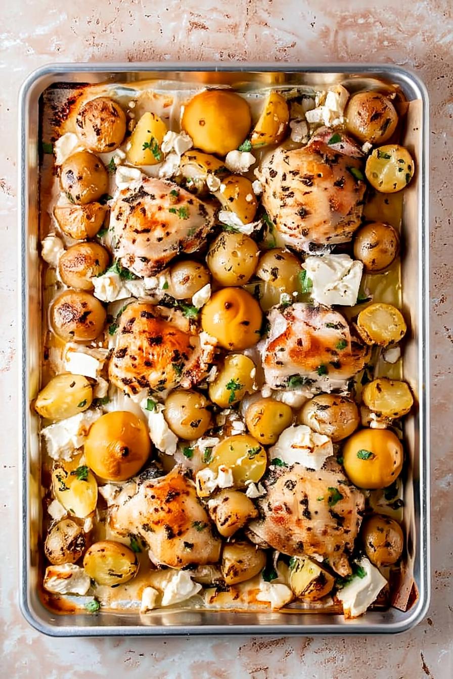 This dish is not just a meal; it’s a celebration of simple ingredients that pack big flavor. I often make it on busy weeknights when I crave something wholesome without spending hours in the kitchen. The combination of crispy chicken thighs and tender potatoes is comforting and satisfying. Plus, it’s budget-friendly and ideal for feeding the family. After testing my method through different seasons, I’ve found it to shine particularly well in spring and summer when fresh herbs are abundant.