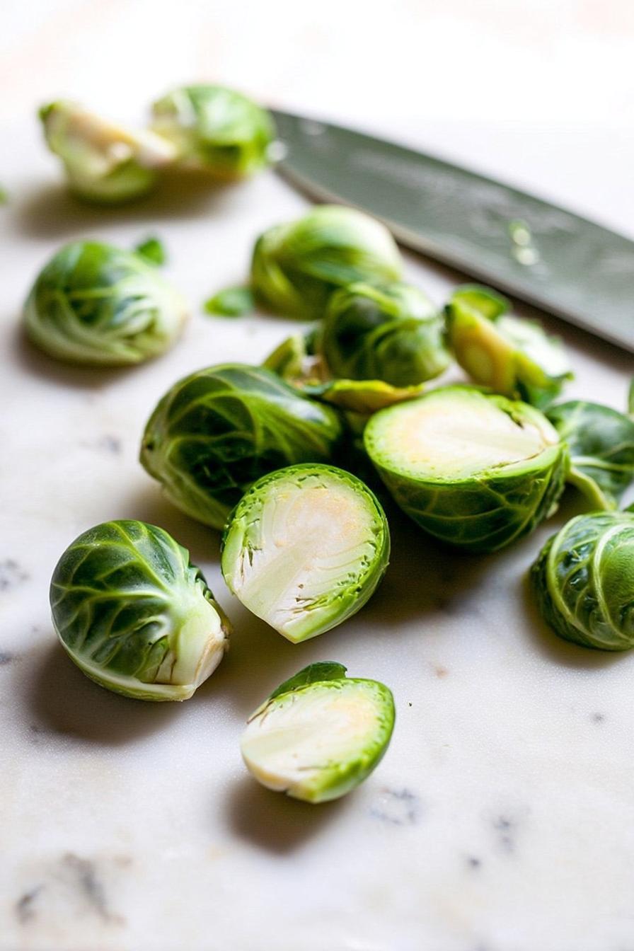 - Brussels sprouts: halved for quick, even roasting; trim off loose leaves.