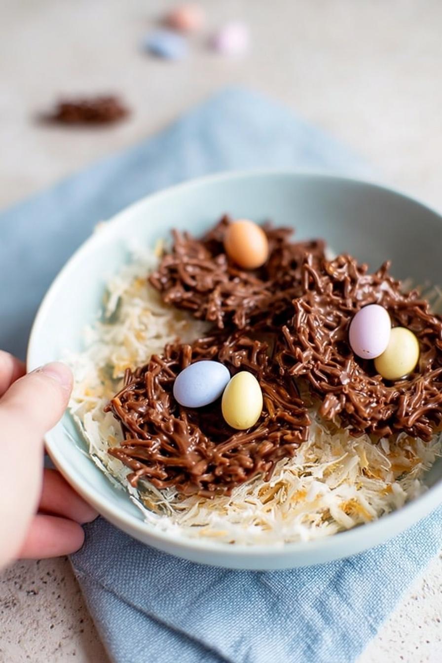 - Can I use sweetened coconut instead of unsweetened? You can, but it may make the nests stickier and sweeter—cut chocolate slightly to balance.