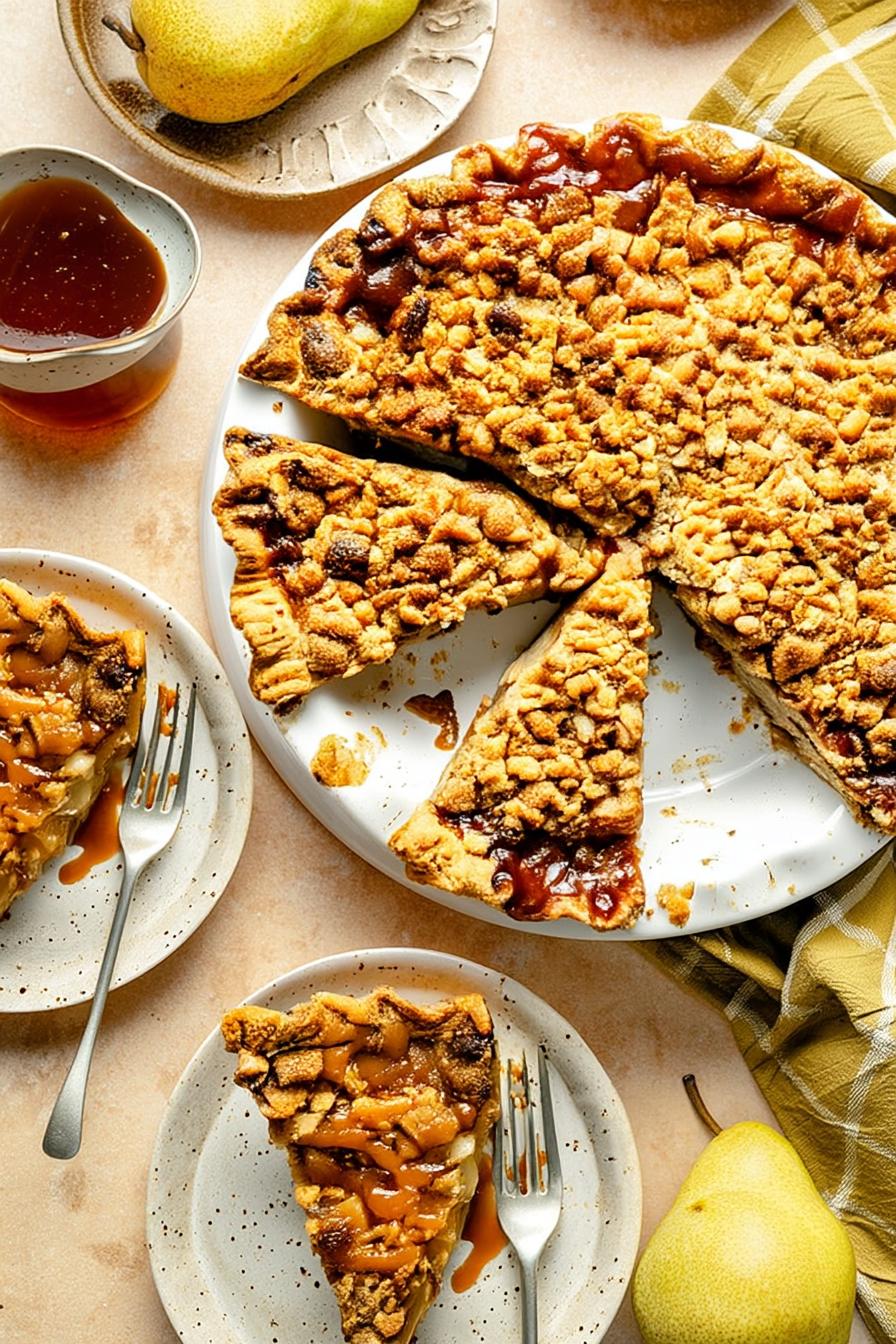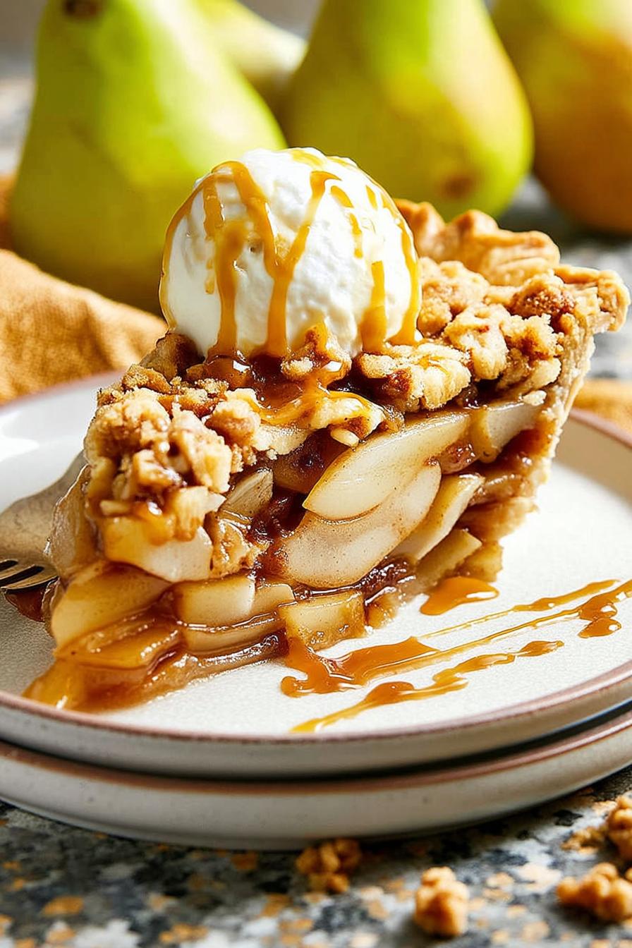 Serve slices of Pear Pie with a scoop of vanilla ice cream or a dollop of lightly whipped cream. For a sharpened contrast, a drizzle of salted caramel or sprinkle of toasted pecans elevates each bite. Enjoy alongside a hot cup of spiced tea or coffee for a cozy treat.