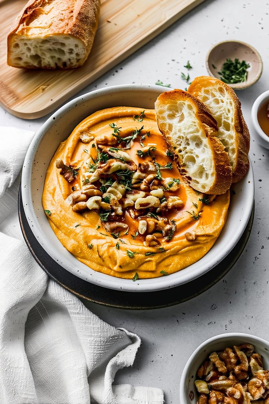 After multiple trials, this Pumpkin Whipped Feta Dip has become my go-to autumnal appetizer—its glossy, nutty surface and silky smooth body still delight me every time. My favorite is spreading it thick on toasted baguette slices and topping with extra pepitas. If you try it, please let me know how this Pumpkin Whipped Feta Dip turned out for you; I love hearing your twists!