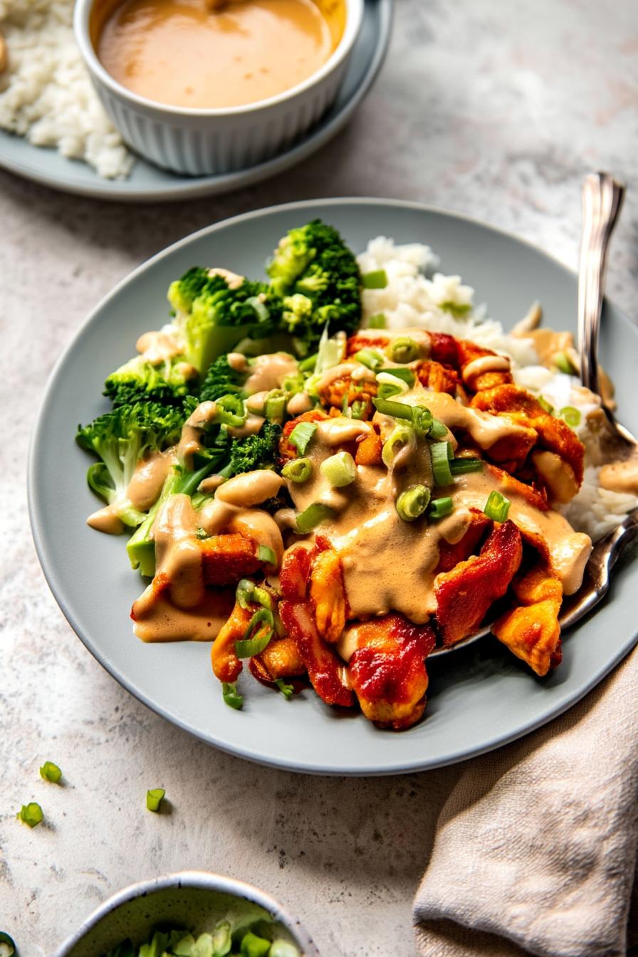 About Red Curry Chicken Stir Fry with Spicy Cashew Sauce