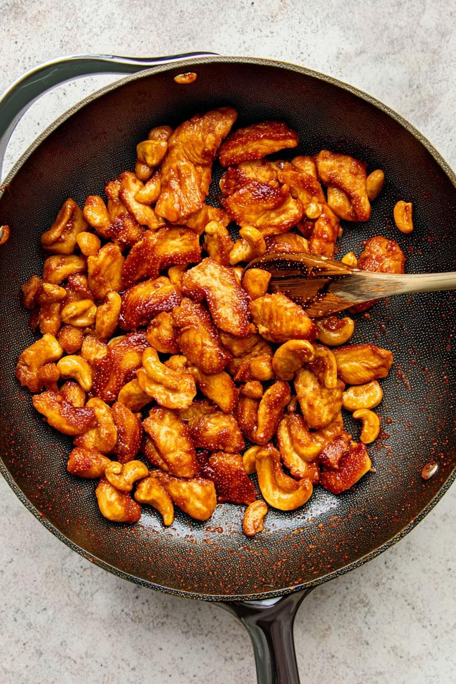 - Add cashews, stir, and serve over rice.