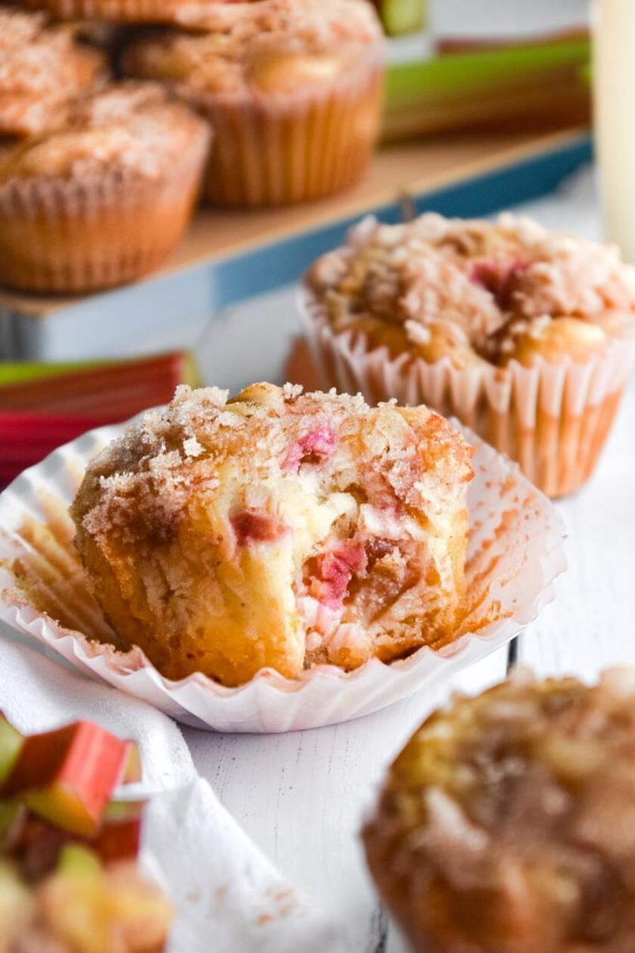 Bursting with tangy rhubarb and topped with a cinnamon topping. These moist and tender Rhubarb Muffins are the perfect way to start the day.