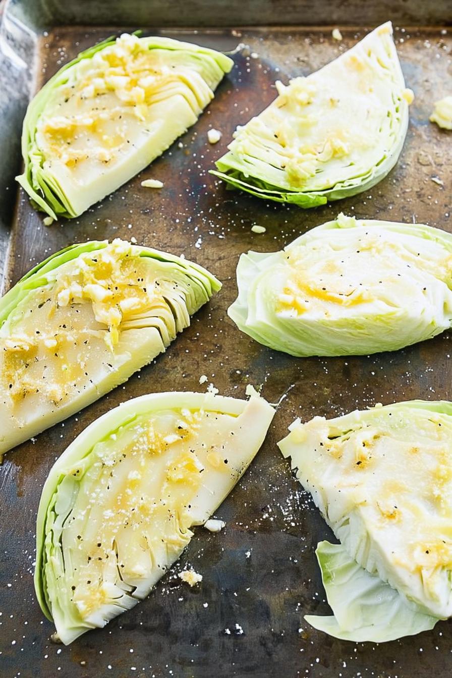 - Brush the cabbage with olive oil and flip to coat both sides.