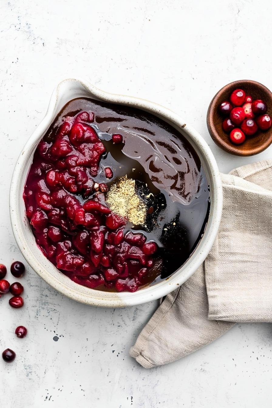 - In a medium bowl, whisk together the barbecue sauce, cranberry sauce, brown sugar, apple cider vinegar, and ground mustard until smooth.