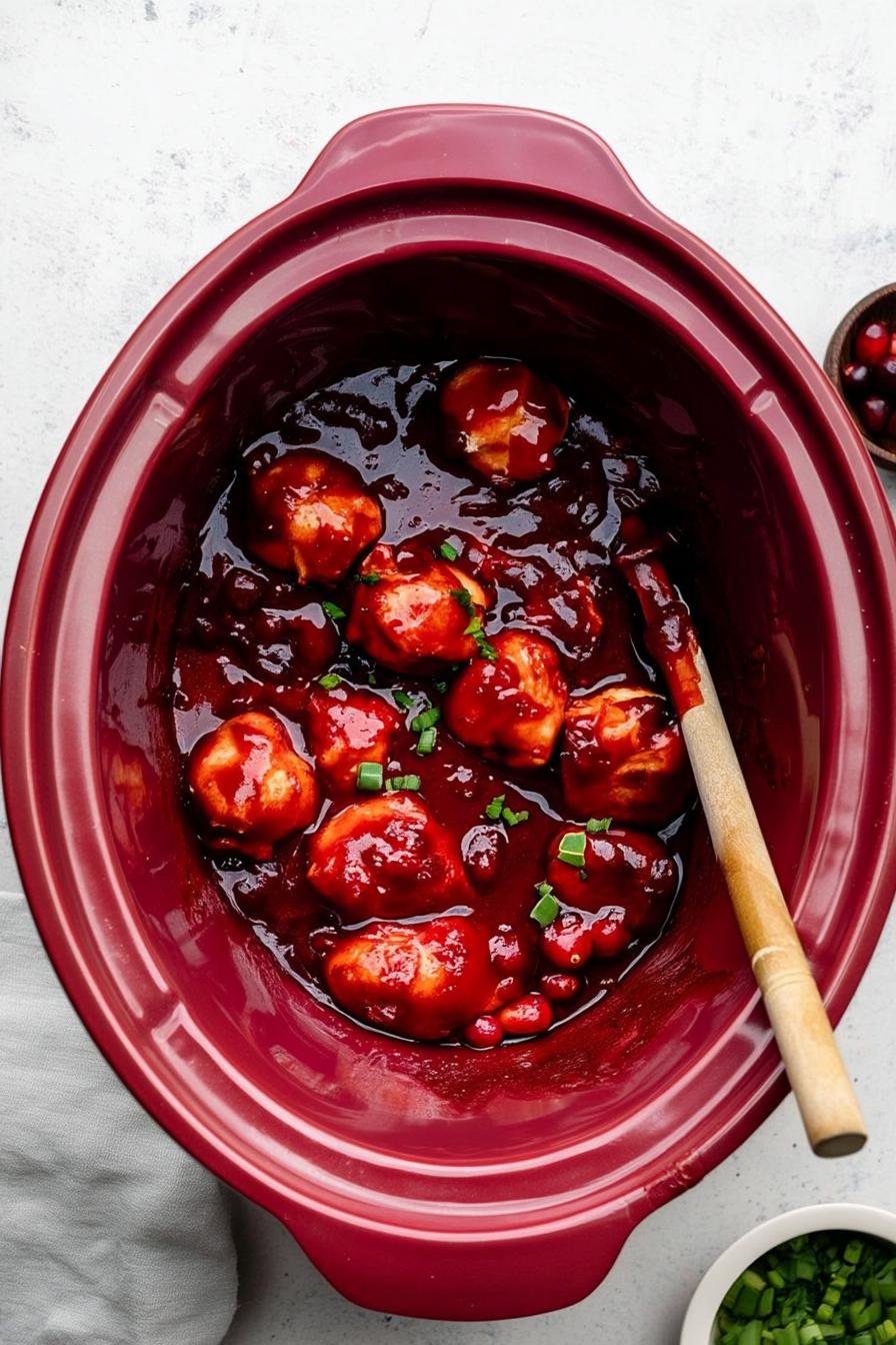 Slow Cooker Cranberry BBQ Meatballs have earned a spot in my go-to recipe arsenal—each bite brings sweet, tangy, and smoky notes to the table with zero hand-on effort. I love serving them at casual gatherings or plating them over noodles for a family dinner. Let me know how your batch turns out, and enjoy every saucy, spoon-licking moment!