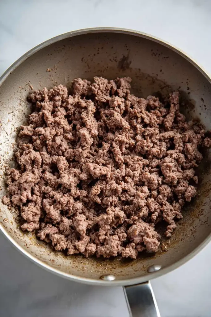 - Brown 1 lb ground beef in a skillet over medium-high heat, letting it gently sizzle until no pink remains (about 5–7 minutes), then drain off excess fat.