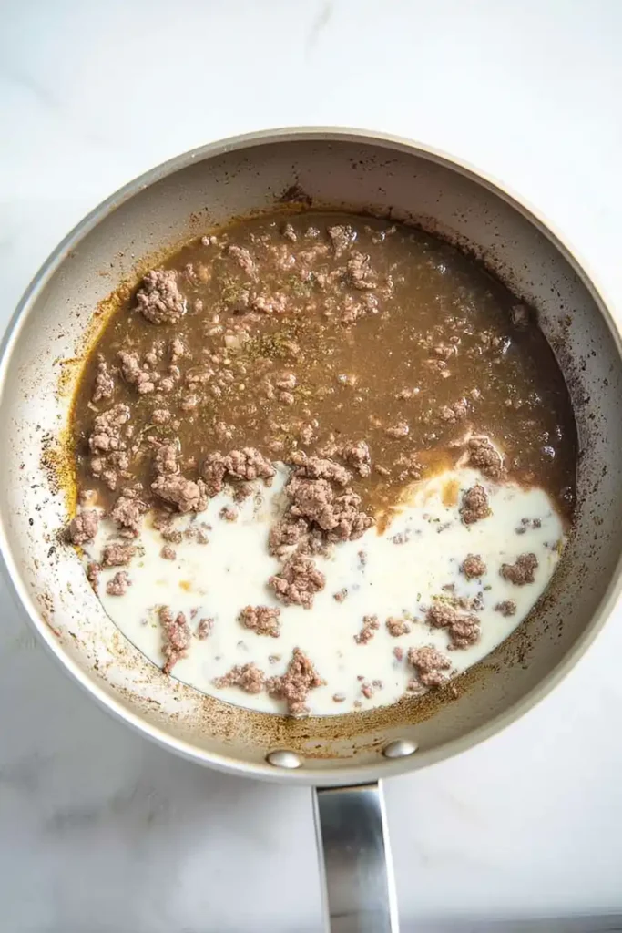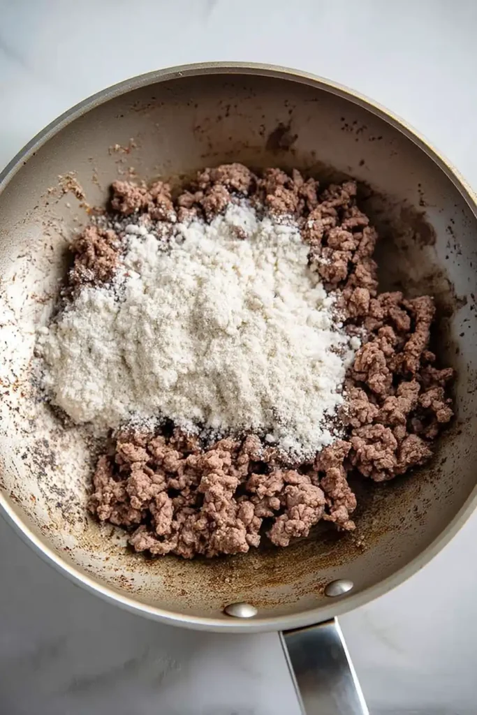 - Brown the ground beef until no pink remains, then drain excess fat.