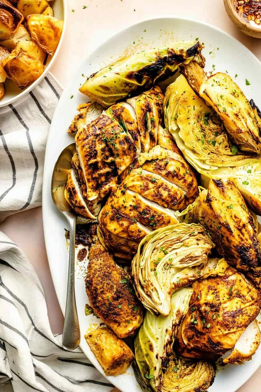 A flavorful and easy-to-make roasted chicken dish paired with tender, seasoned cabbage.