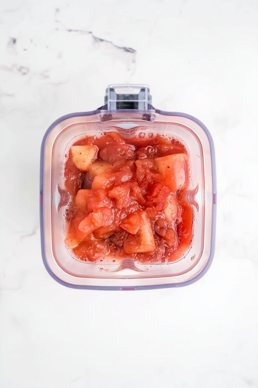 - Carefully transfer the cooked fruit mixture and any remaining liquid to a blender, blending until smooth. If needed, do this in batches to avoid splashes.