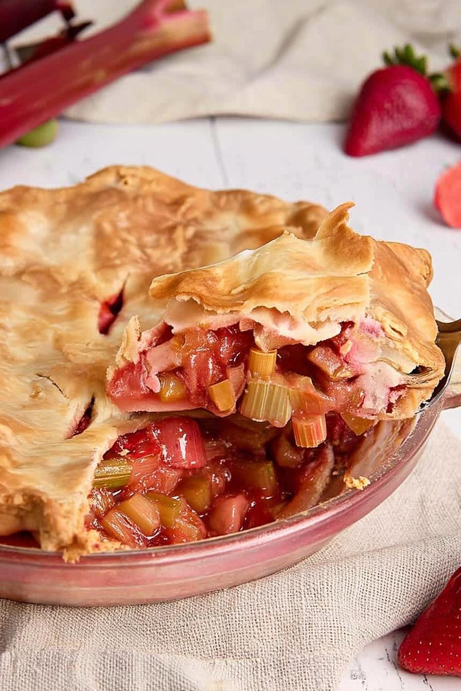 This homemade Strawberry Rhubarb Pie is perfectly sweet and tart, with a golden, flaky crust.