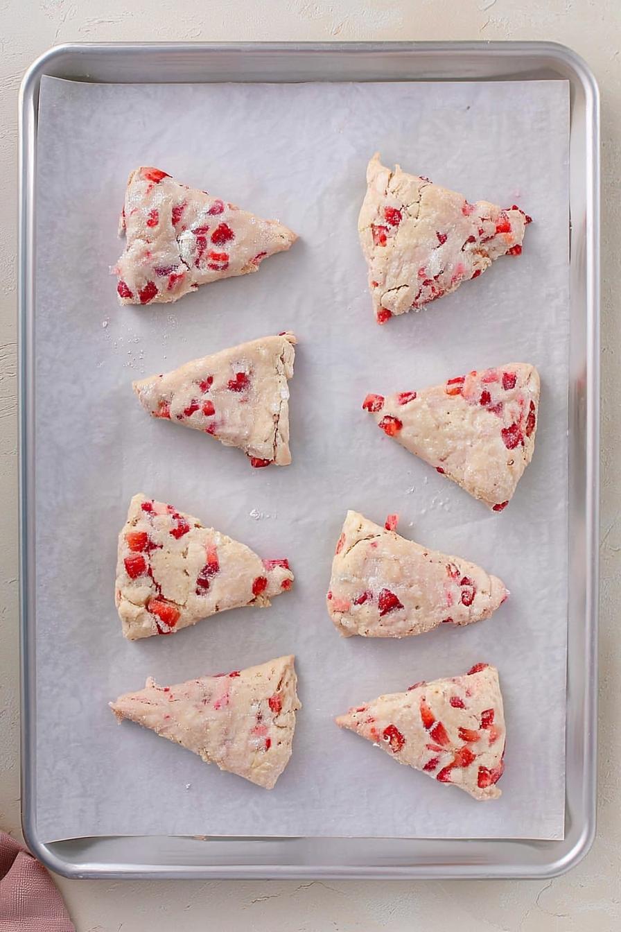 Store your Strawberry Scones in an airtight container in the refrigerator for up to 3 days. For longer storage, freeze them for up to 2 months. To reheat, pop them in a 350℉ oven for 5 minutes until warmed through. I found that reheated scones taste just as delightful as when fresh out of the oven!