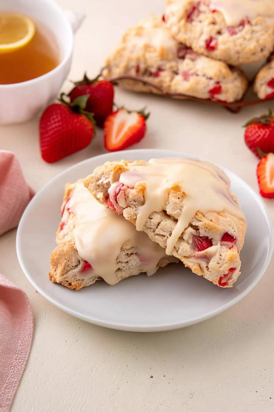 I truly enjoy these Strawberry Scones fresh from the oven, still warm, with a delicate glaze drizzled on top. They evoke memories of springtime gatherings and vibrant café mornings. I invite you to share your baking results and any tweaks you discovered along the way!