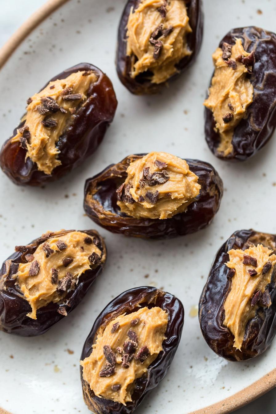 - Sprinkle chopped dark chocolate atop each stuffed date, letting it cling to the creamy nut butter.