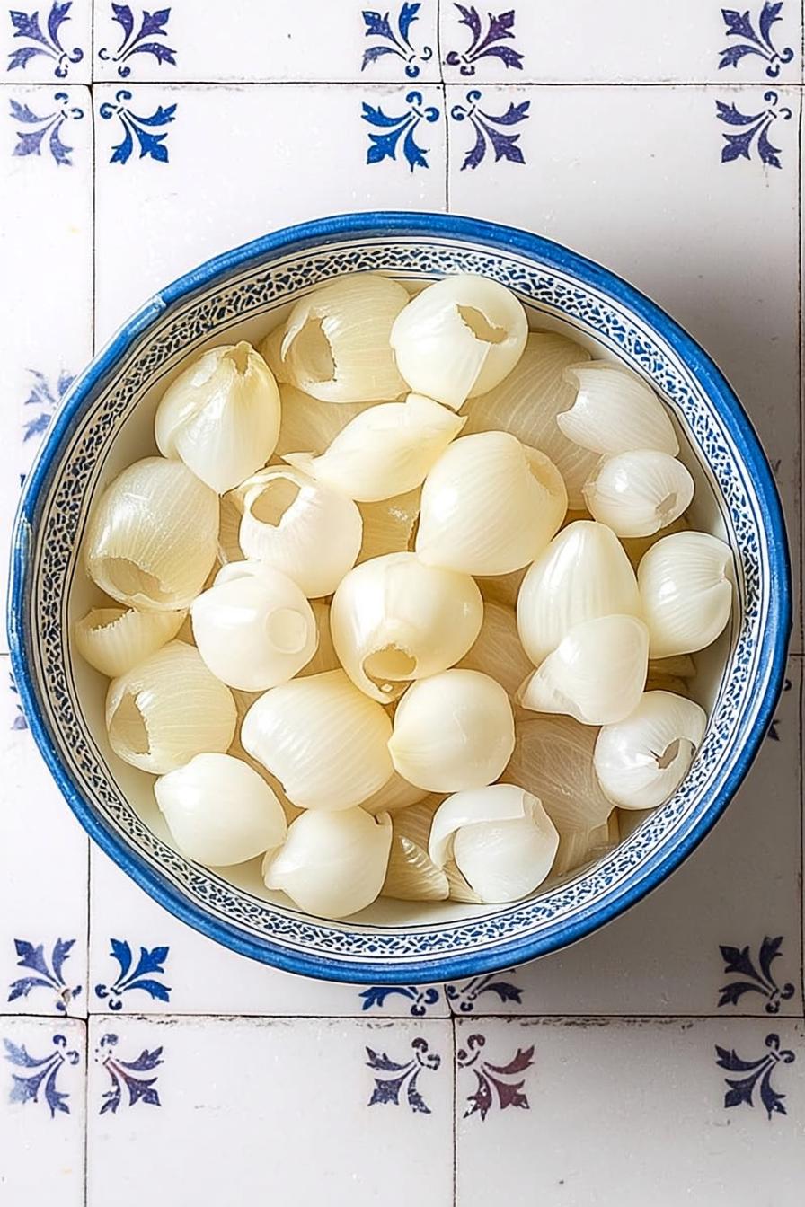 - Boil onions until just tender, about 10–15 minutes. They should be soft but still hold their form. Let cool.