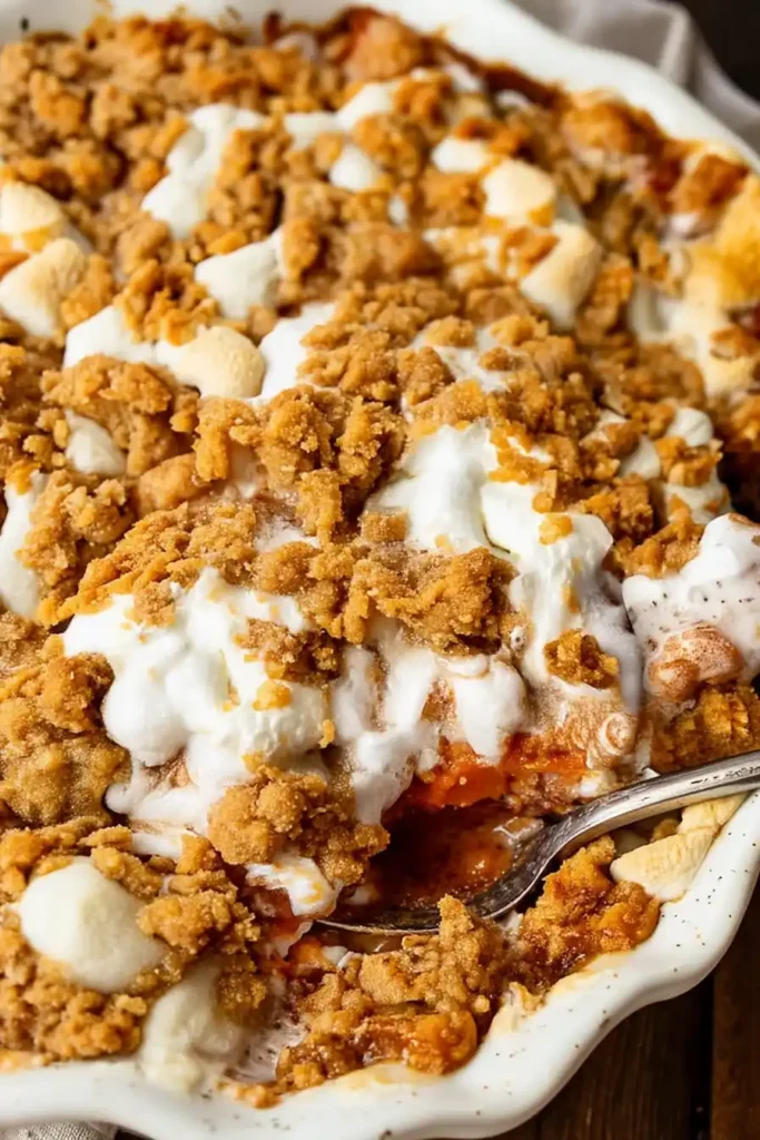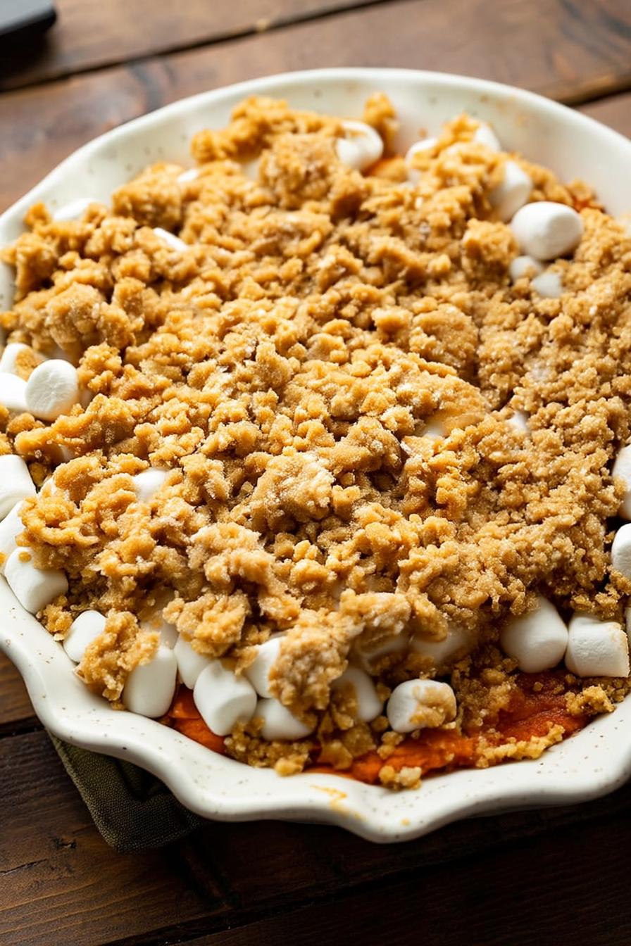 - How do I make sweet potato casserole ahead of time? — Assemble the mash and streusel separately, refrigerate both up to a day, then top and bake before serving.